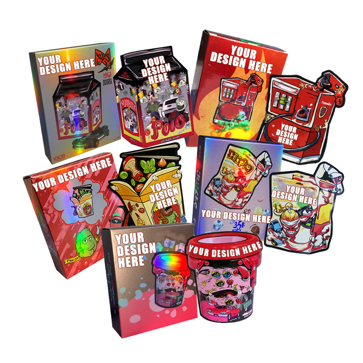 Custom Printed Unique Special Cut 3.5 Weed Mylar Bags with Boxes