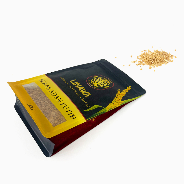 Eight-side sealed flour bags are made of high-strength composite materials, featuring excellent moisture and dust resistance. The stable upright structure provides tidy shelf display and easy storage. Secure sealing effectively prevents clumping and keeps wheat powder dry and fresh long-term. Custom sizes and branding printing are available for your business needs.