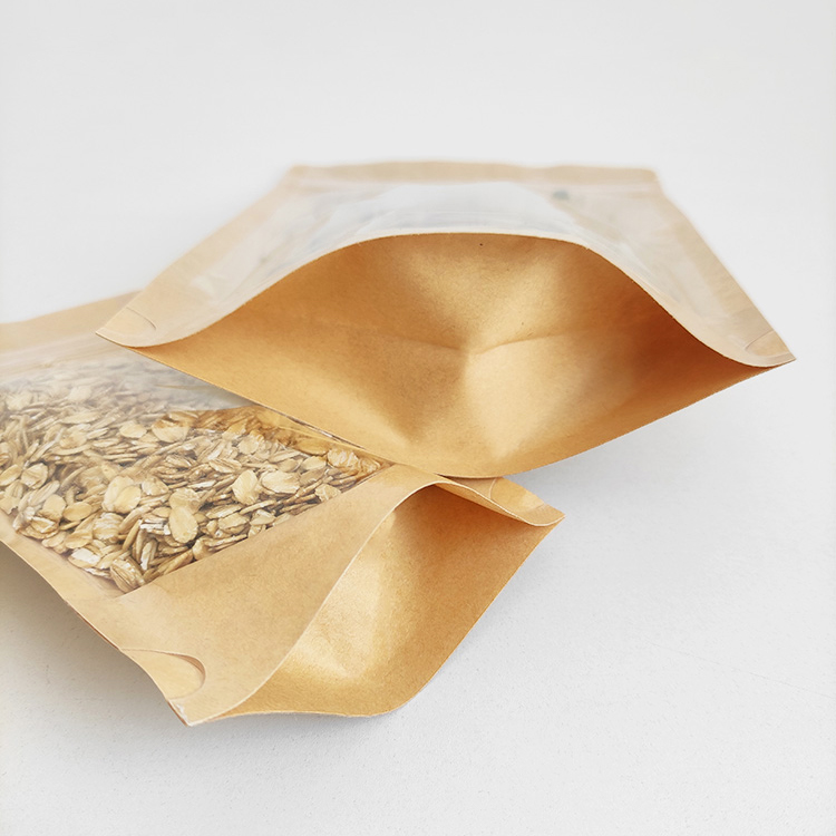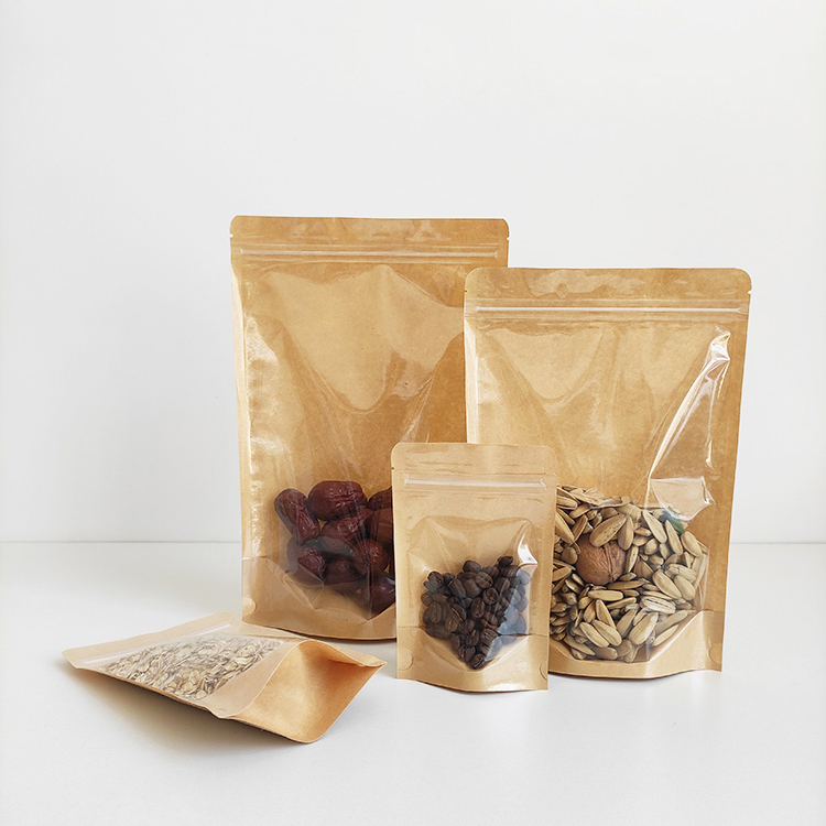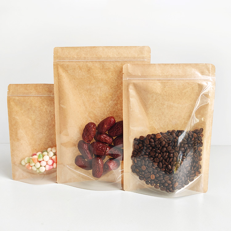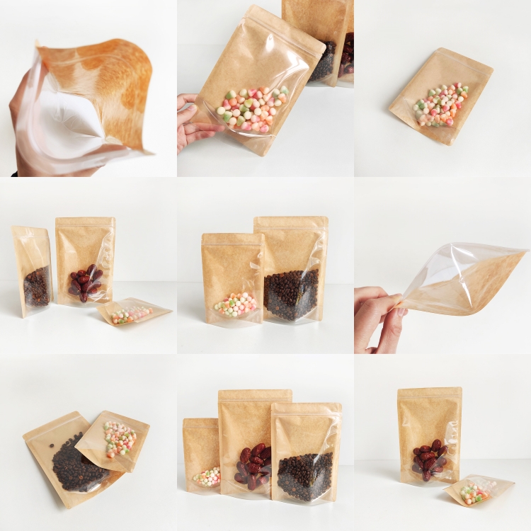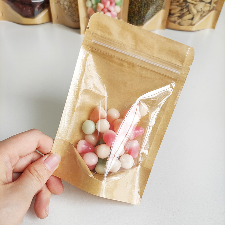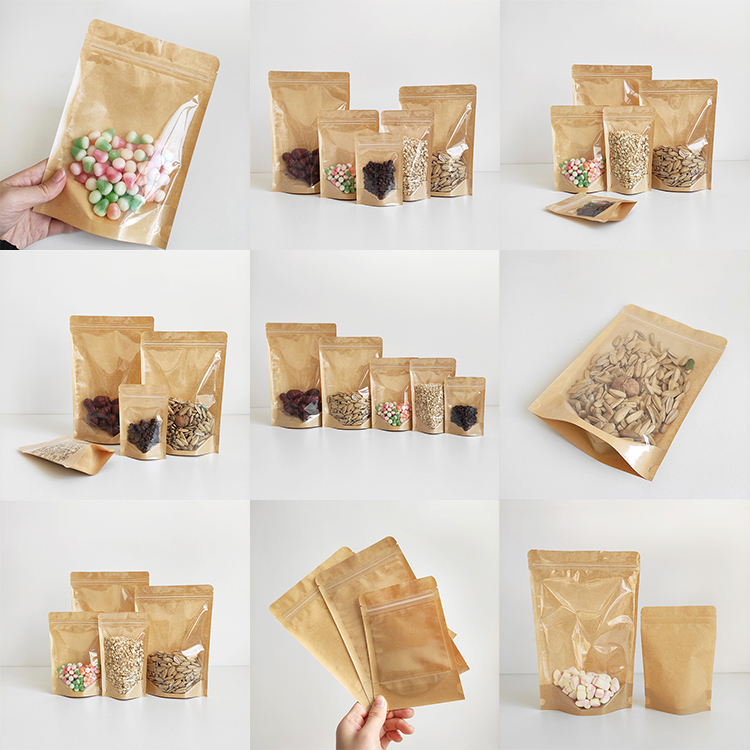 In Stock Bags Clear Front Brown Kraft Paper Back Stand up Pouches
