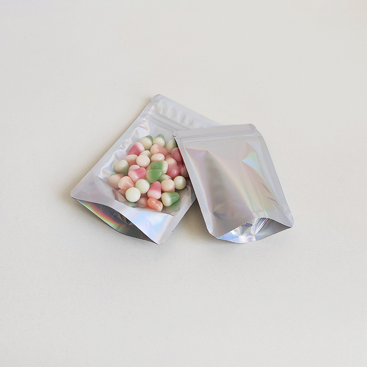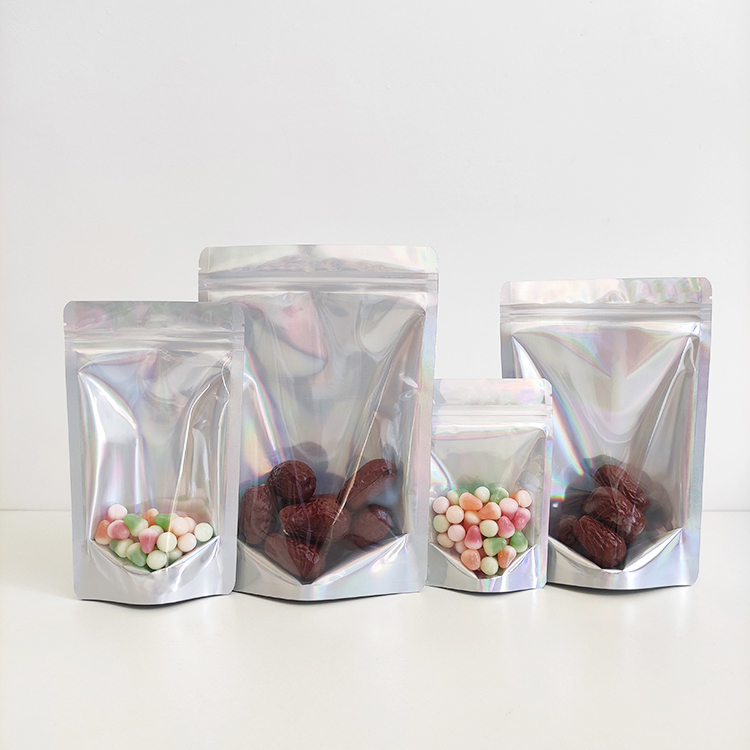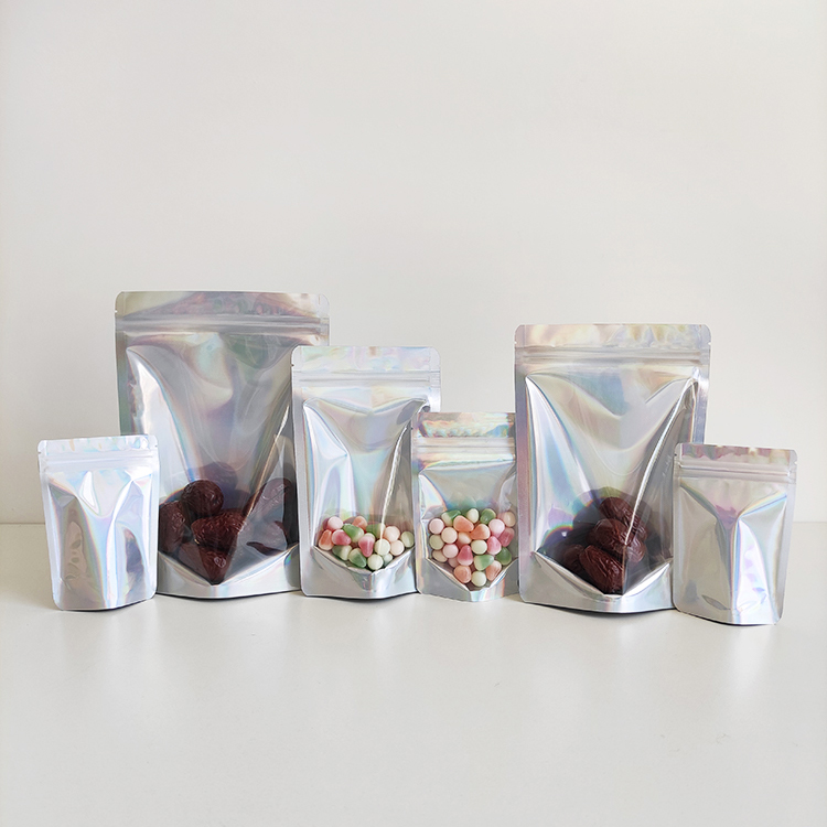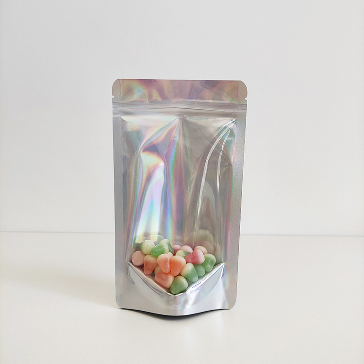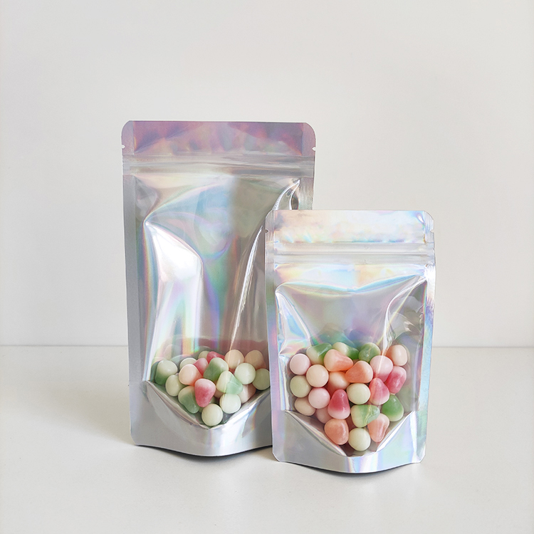 In Stock Bags Clear Front Stand up Holographic Pouch