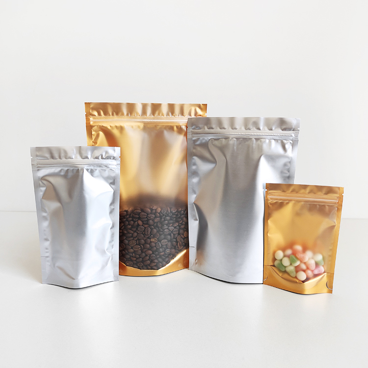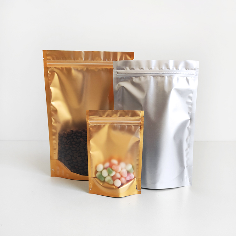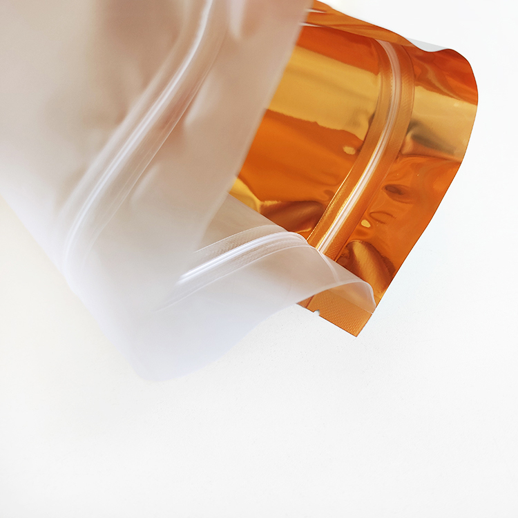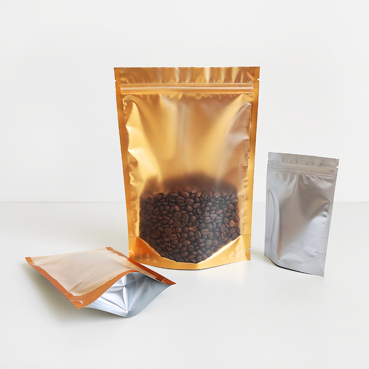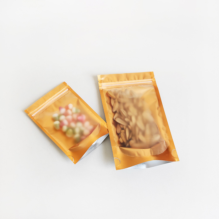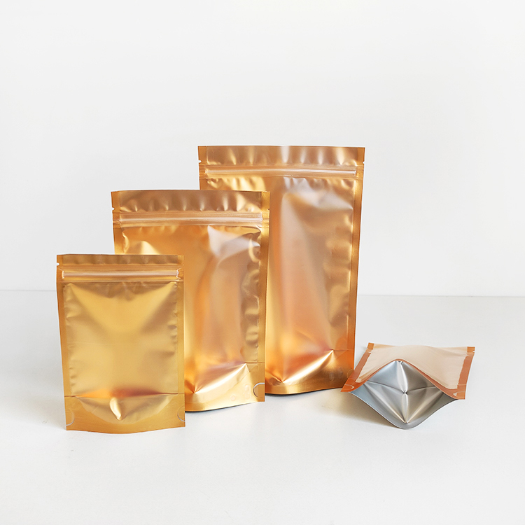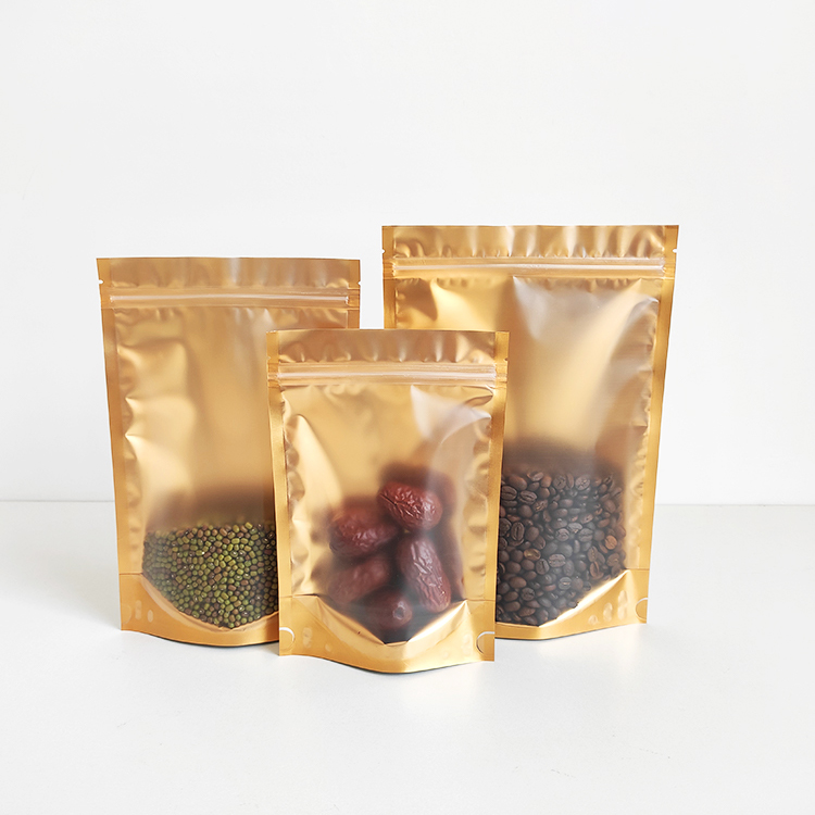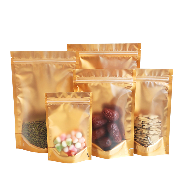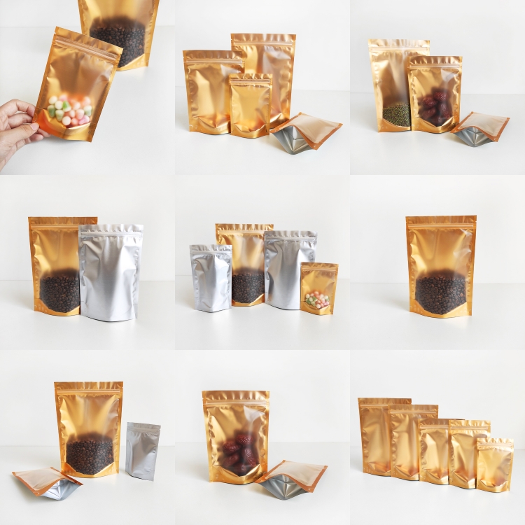 In Stock Bags Front Clear Golden Back Stand up Foil Packaging Pouches