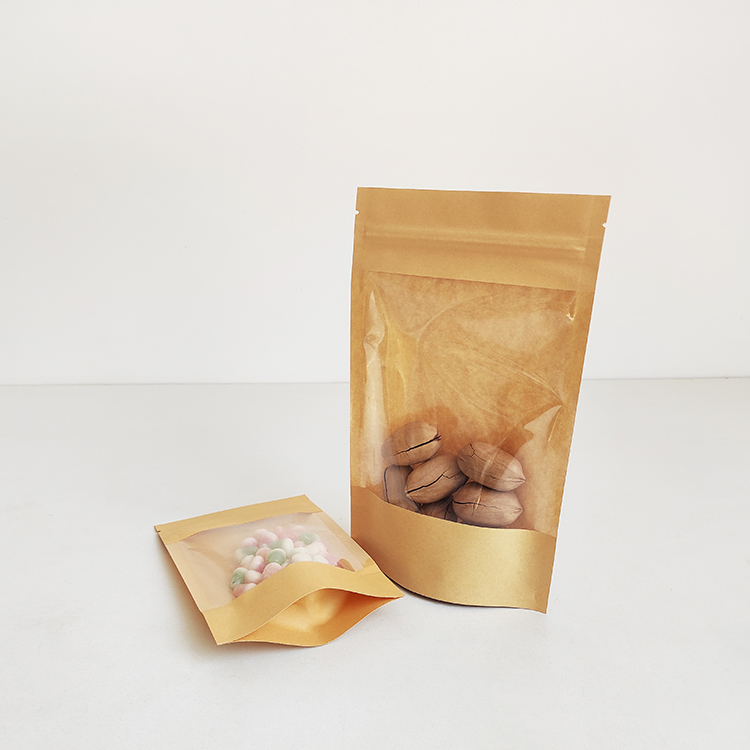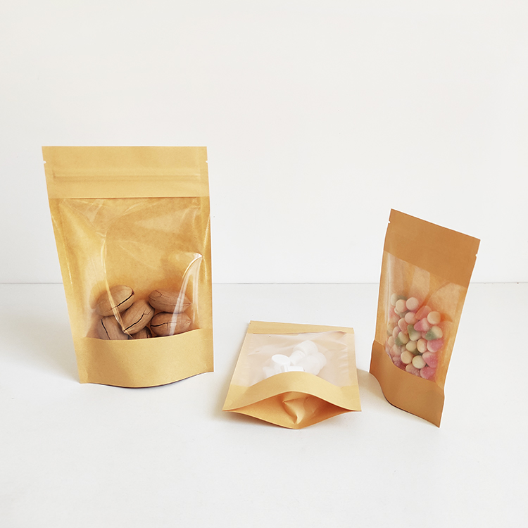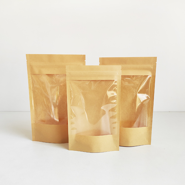 In stock Bags Large Window Kraft Paper Stand up Pouch