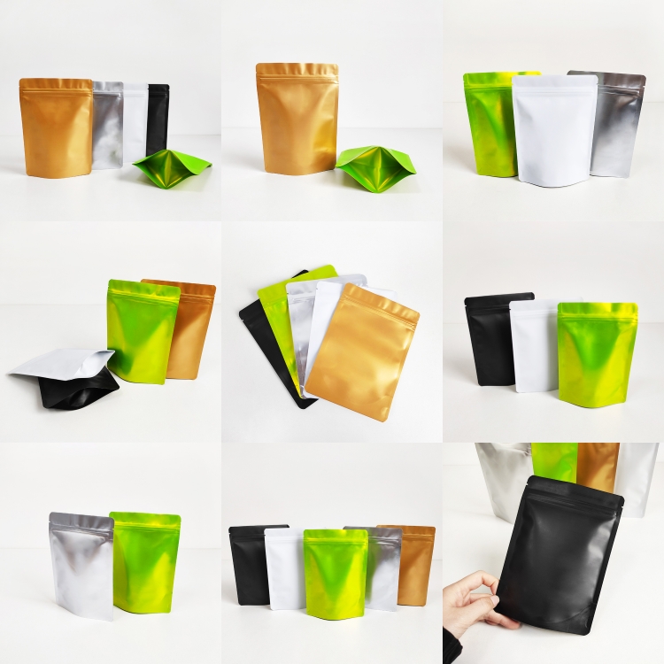 - Is available in five colors: black, white, gold, green, and silver.It features a matte finish, Comes with Rounded Corners, Resealable zipper and Tear notch.Available in a wide range of sizes, Ideal for food and non food packaging.