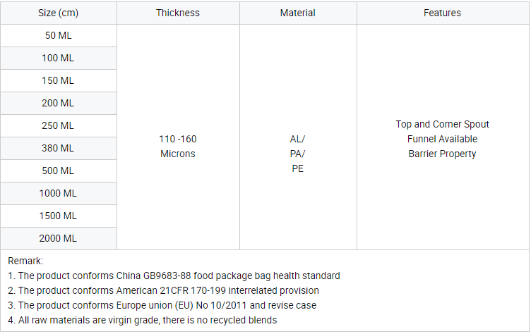 - Is Comes with Rounded Corners,The pouch is fully silver-colored. Some sizes are equipped with hanging holes. It comes with a spout, and some models include a handle.Available in a wide range of sizes, Ideal for food and non food packaging.
