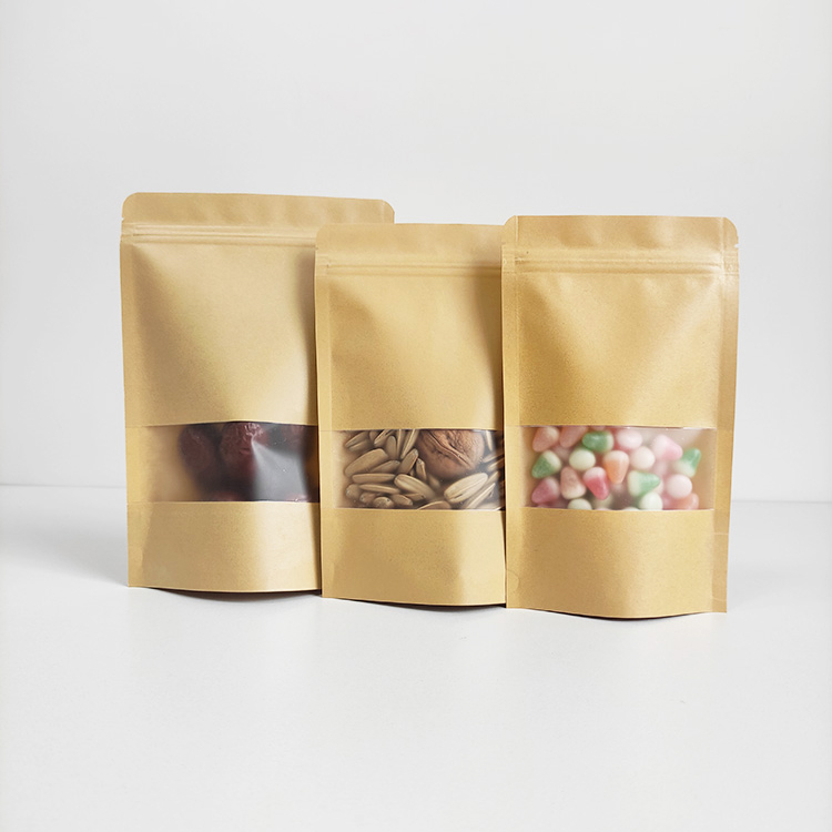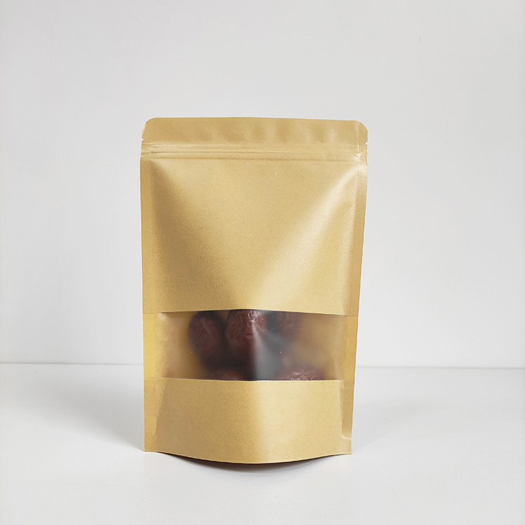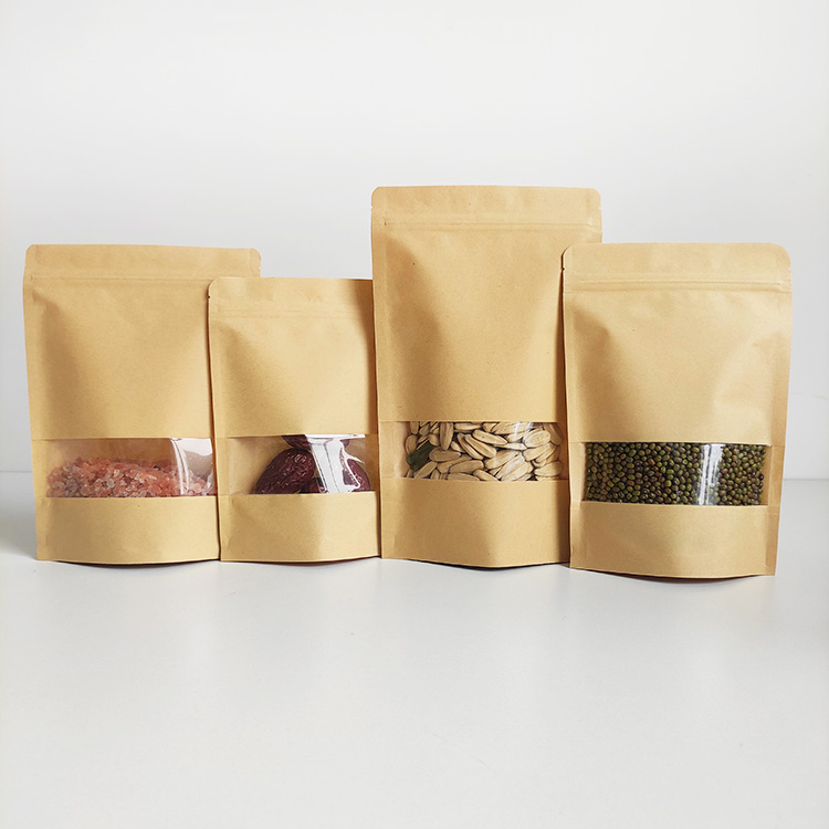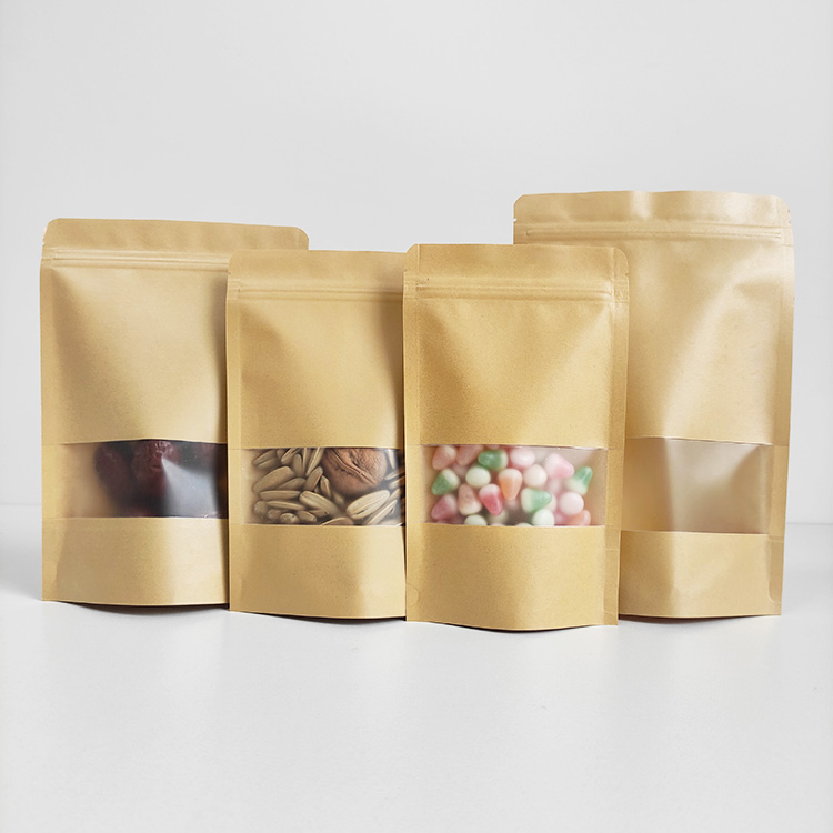 In Stock Bags Stand up Brown Kraft Paper Pouch With Matte/Glossy Window